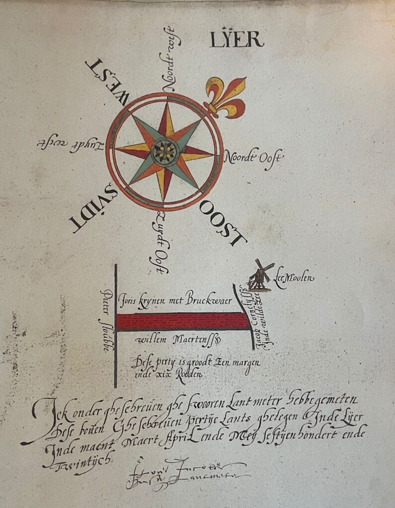 Willem Maartens woonde vlak bij de Leemolen. Op deze kaart uit het begin van de 17e eeuw is de Leemolen duidelijk zichtbaar zo ook het perceel land waar de landmeter in 1620 zijn naam “Willem Maartens” op schreef.