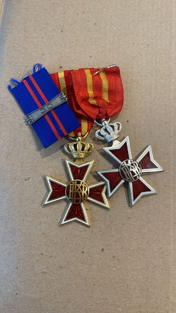 De blauwe band bij de medaille verwijst naar 30 jaar trouwe brandweerdienst.