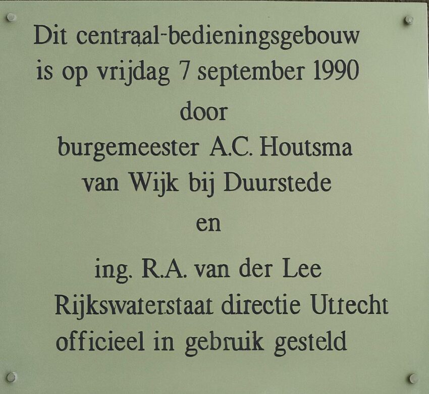 In 1990 werd bij de sluis in Wijk bij Duurstede een nieuw bedieningsgebouw officieel in gebruik genomen. Hiermee werd de bediening van de sluis gecentraliseerd en gemoderniseerd, passend bij de groeiende eisen aan scheepvaart en waterbeheer. De opening werd verricht door burgemeester A.C. Houtsma van Wijk bij Duurstede en ing. Rinse Adolf van der Lee,…